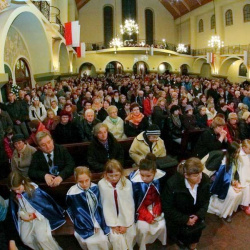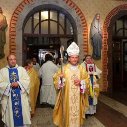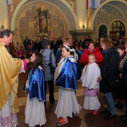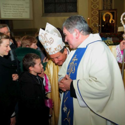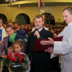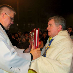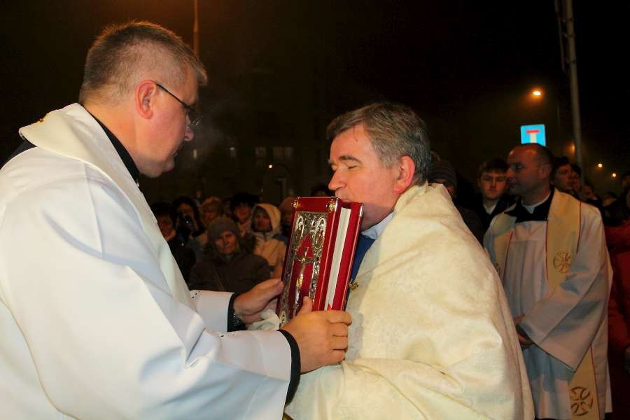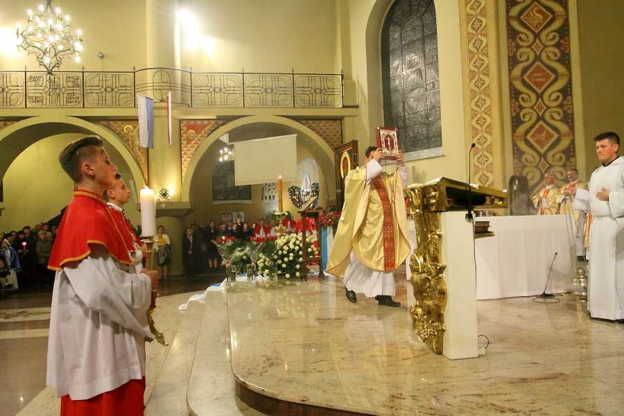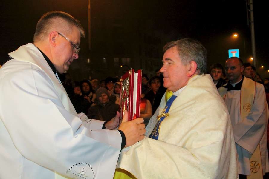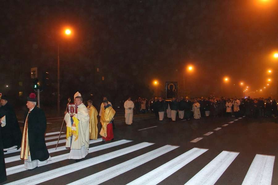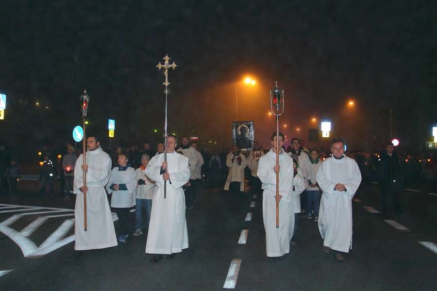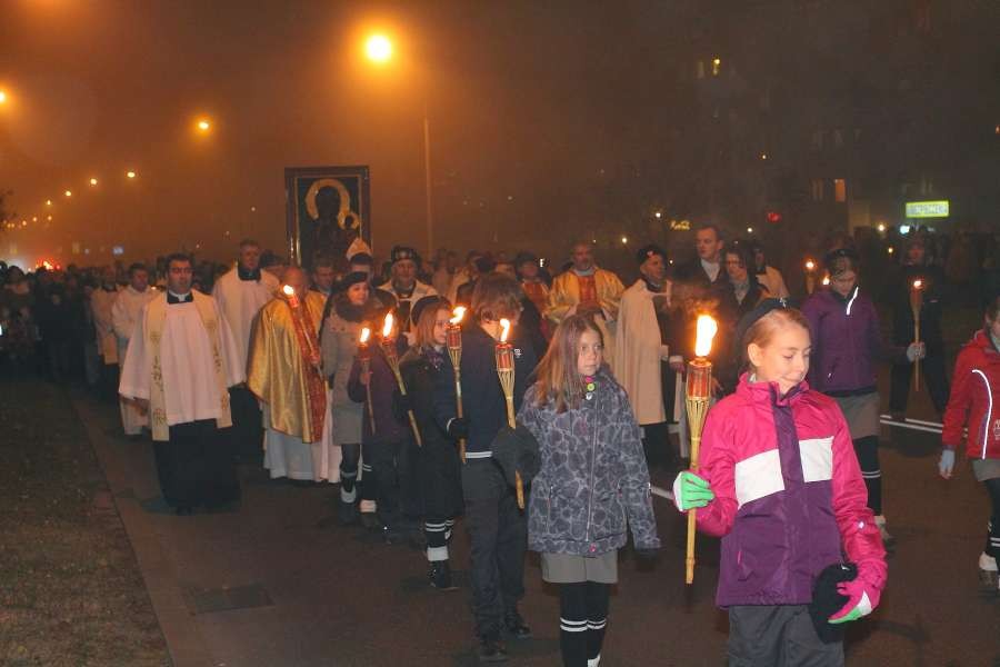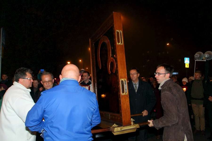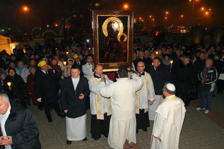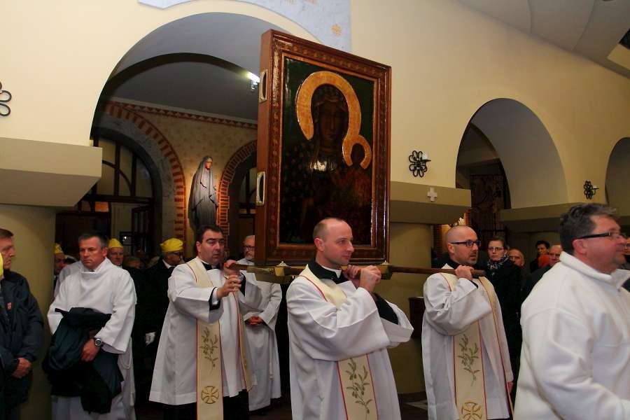 Uroczyste przejęcie Ikony Matki Bożej Jasnogórskiej odbyło się w niedzielę 26 października o godz. 18.30 na granicy parafii na skrzyżowaniu ulic Stryjeńskich i Przy Bażantarni. O godz. 19.00 Mszy św. powitania obrazu przewodniczył J.E. ks. biskup Rafał Markowski