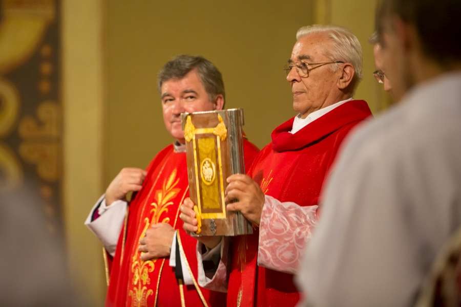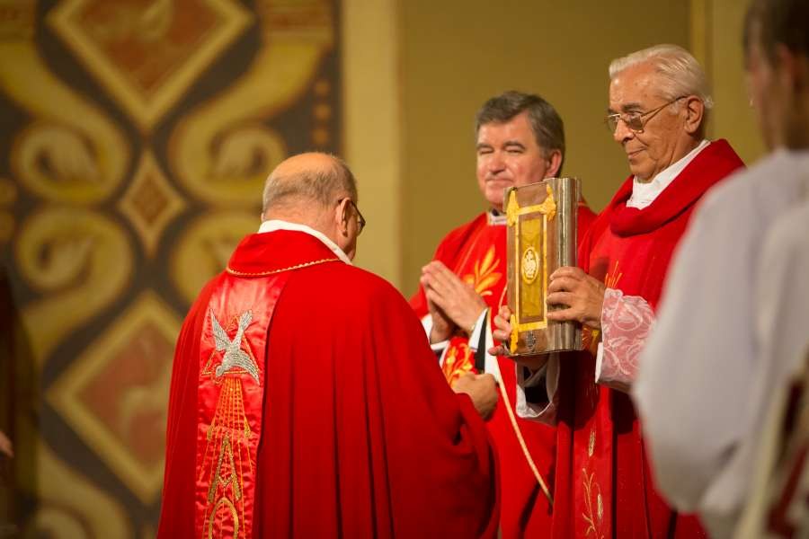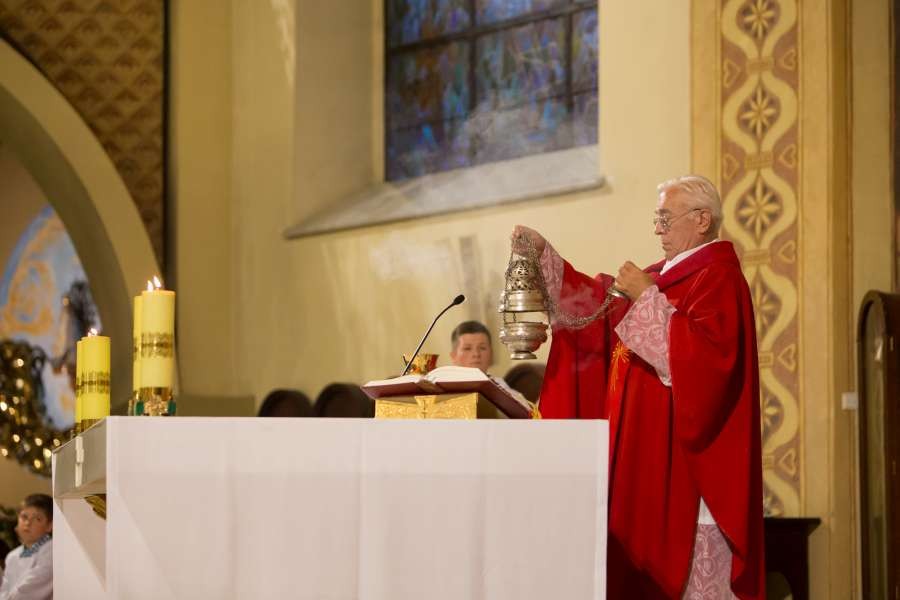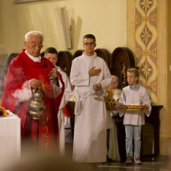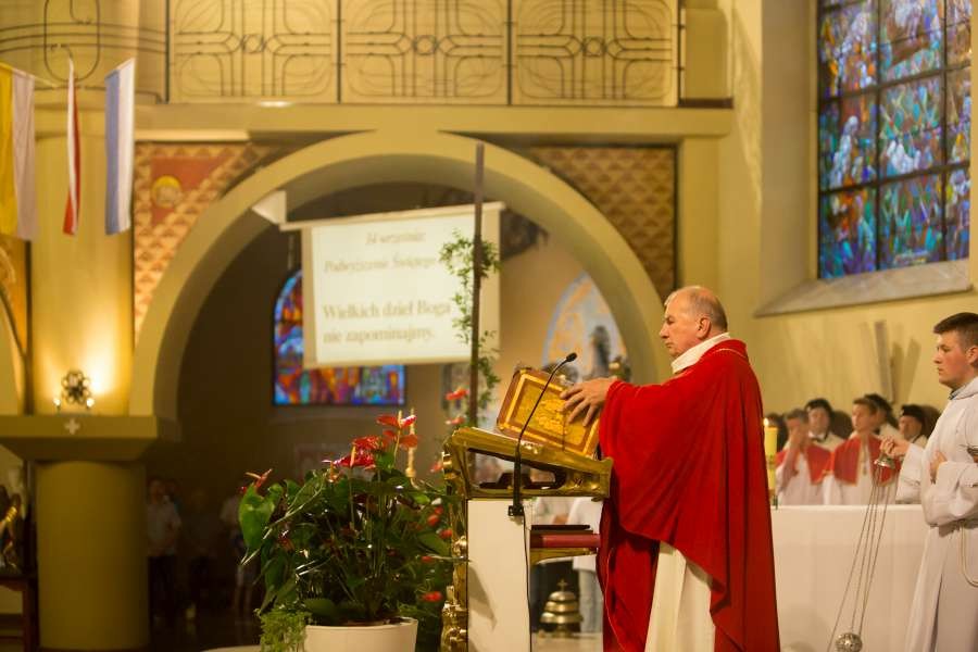 Uroczyste wprowadzenie relikwii Krzyża św. połączone z jubileuszem pięćdziesięciolecia kapłaństwa pierwszego proboszcza ks. prałata Włodzimierza Kucharskiego