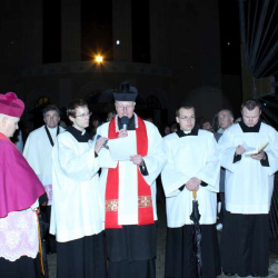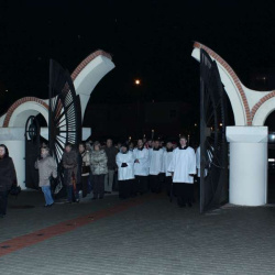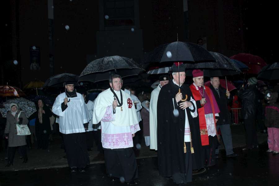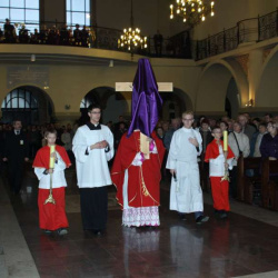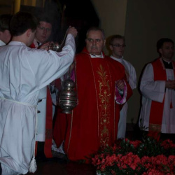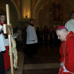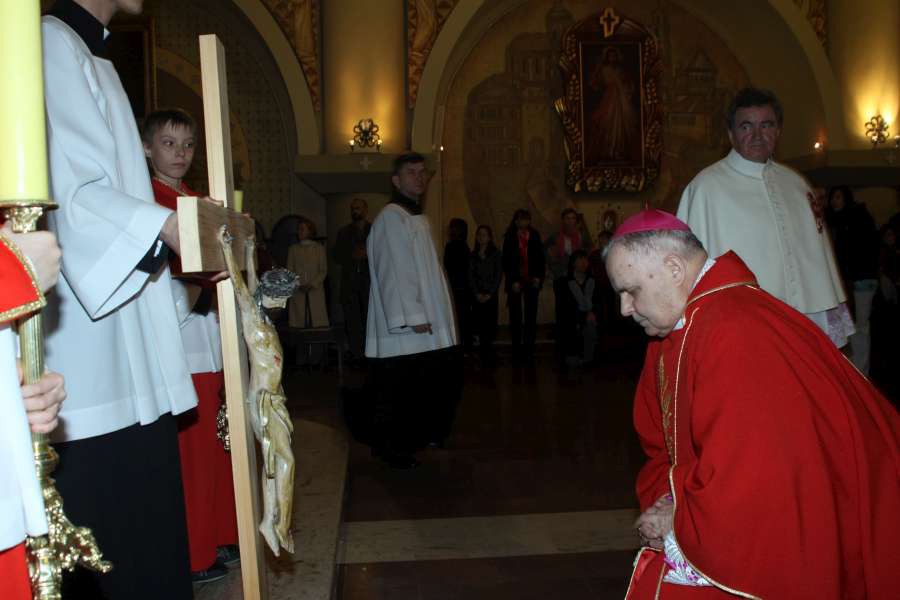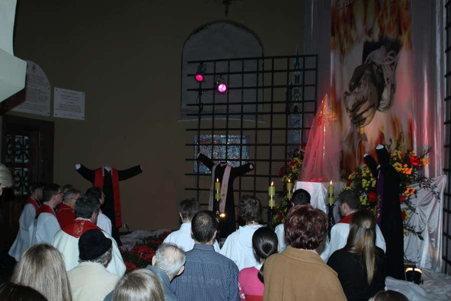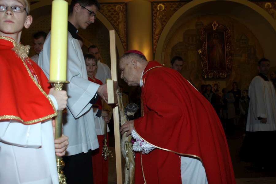 Liturgia Męki Pańskiej. Po Adoracji Krzyża, o godz. 20.00 z kościoła św. Tomasza wyruszyła Ursynowska Droga Krzyżowa ulicami Dereniową i Stryjeńskich. Droga Krzyżowa zakończyła się w naszym kościele. Liturgii Męki Pańskiej i Drodze Krzyżowej przewodniczył bp Marian Duś.
