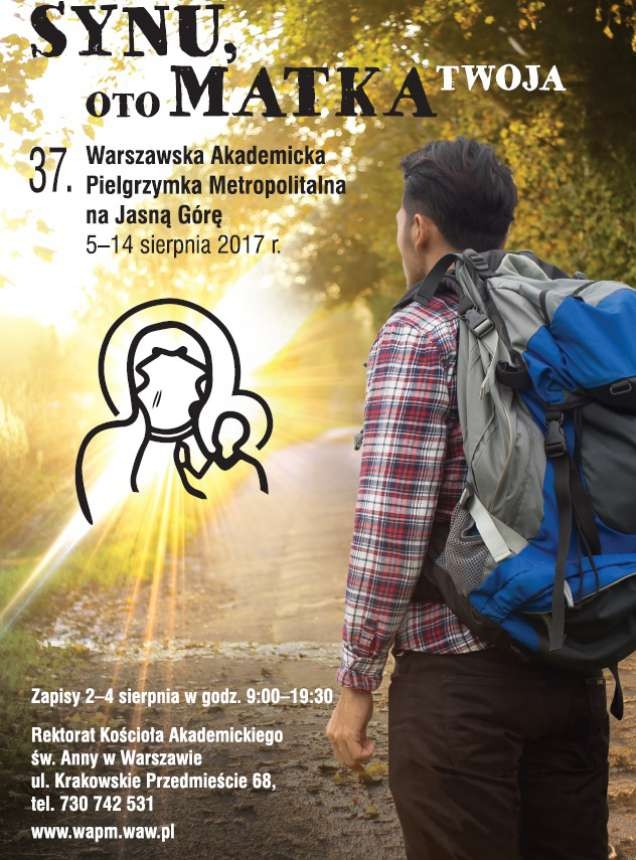 Zapraszamy na 37. Warszawską Akademicką Pielgrzymkę Metropolitalną z Warszawy na Jasną Górę. Pielgrzymka rozpocznie się 5 sierpnia o godz. 5:30 rano Mszą Świętą w kościele św. Anny na Krakowskim Przedmieściu, po której grupy pielgrzymkowe wyruszą w drogę z Placu Zamkowego. Pielgrzymka dotrze na Jasną Górę 14. sierpnia rano.