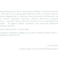 Prośba na XXX lecie Szkoły Podstawowej nr 336