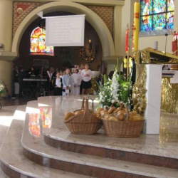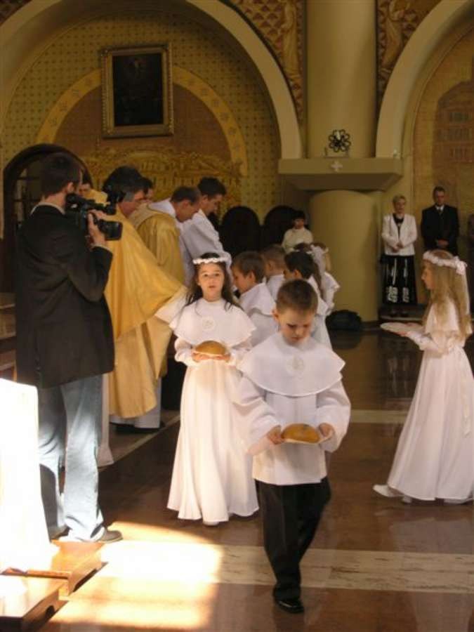 Po Mszy św. każde dziecko otrzyma mały chlebek, aby od modlitwy i podzielenia się chlebem powszednim z rodziną i gośćmi rozpocząć wspólny czas radości z okazji Komunii dziecka. Można wykorzystać tekst modlitwy, którą załączam: