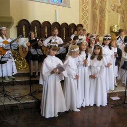 Dobiega koniec pracowitego okresu przygotowań dzieci do uroczystości Pierwszej Spowiedzi i Pierwszej Komunii Świętej. Serdecznie dziękuję za miłą współpracę i umożliwienie przeprowadzenia prób w tak życzliwej atmosferze.