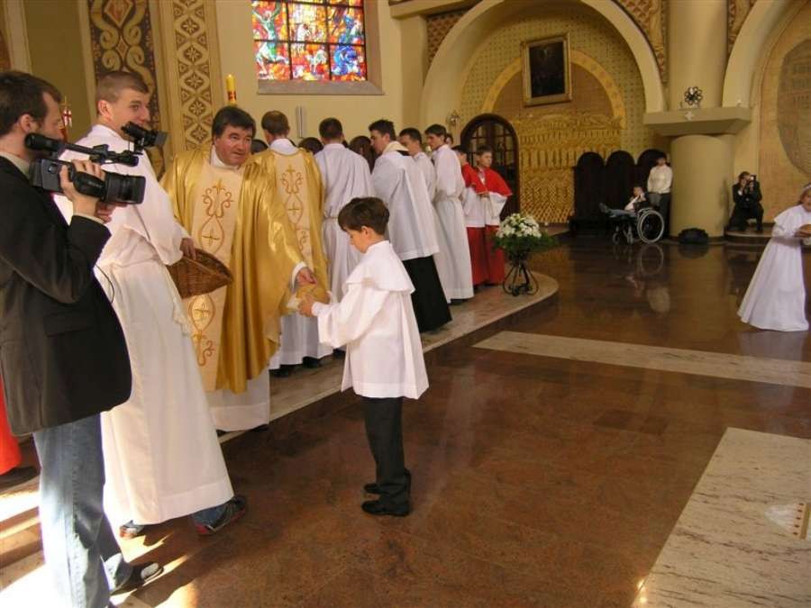 W niedzielę, w Uroczystość Pierwszej Komunii Św., radośni, pojednani z Panem zbieramy się przed kościołem o godz. 9.15. Rodziców proszę, by byli obok dziecka, aby w stosownym czasie udzielić błogosławieństwa. Należy nakreślić krzyżyk na czole i powiedzieć słowa np. „Niech Cię Pan błogosławi i strzeże, niech Pan rozpromieni oblicze swe nad Tobą i niech Cię obdarzy swą łaską” (Lb 6, 24 – 25). Można posłużyć się innym tekstem, np. „ Niech ci Bóg błogosławi, niech cię zachowa od złego, niech cię prowadzi i niech cię strzeże, abyś wzrastał w łasce u Boga i u ludzi. Niech Maryja ma cię w swojej opiece, abyś był radością Kościoła i Ojczyzny. I ja ci błogosławię w imię Ojca i Syna i Ducha Świętego”.