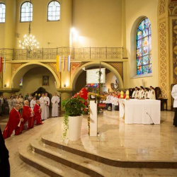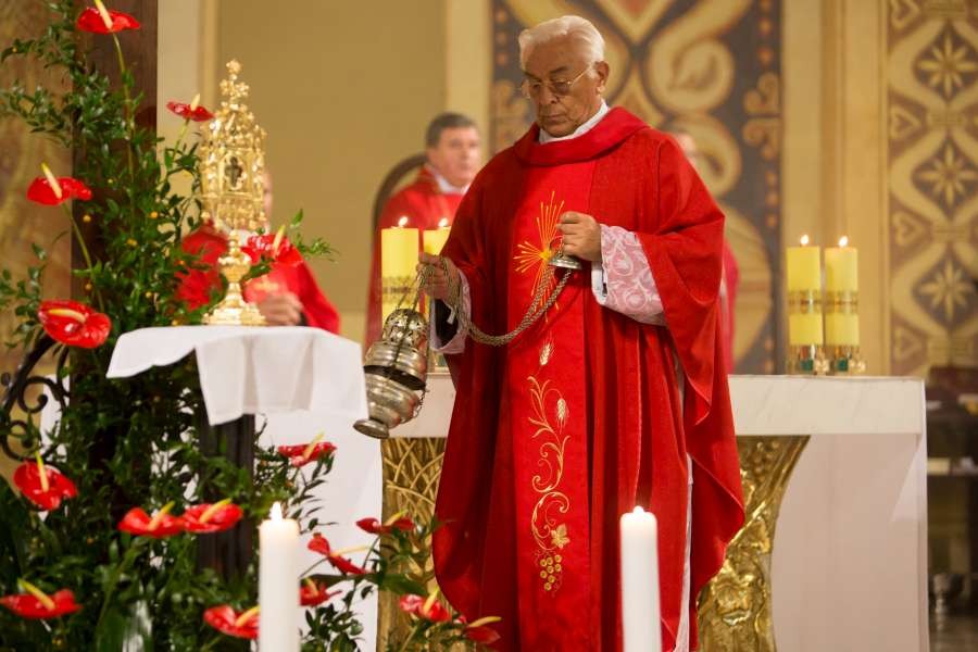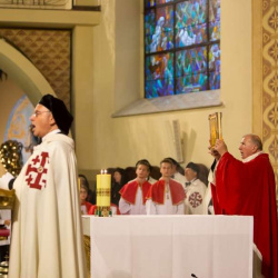 Uroczyste wprowadzenie relikwii Krzyża św. połączone z jubileuszem pięćdziesięciolecia kapłaństwa pierwszego proboszcza ks. prałata Włodzimierza Kucharskiego