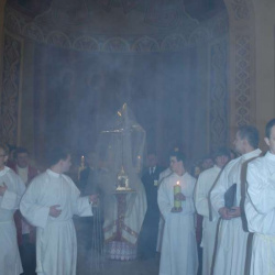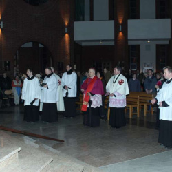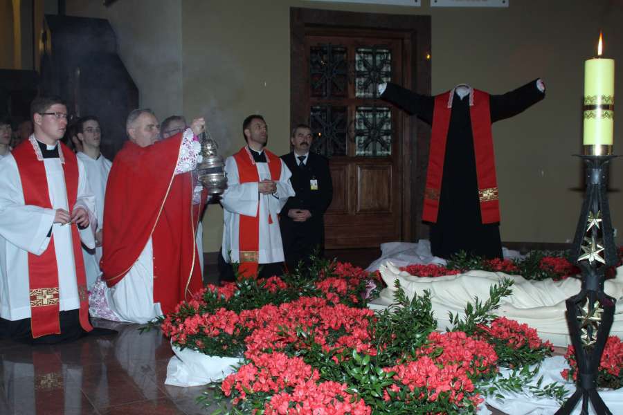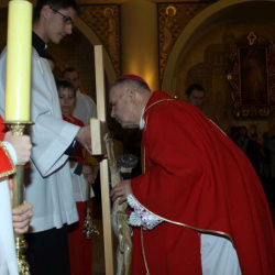 Liturgia Męki Pańskiej. Po Adoracji Krzyża, o godz. 20.00 z kościoła św. Tomasza wyruszyła Ursynowska Droga Krzyżowa ulicami Dereniową i Stryjeńskich. Droga Krzyżowa zakończyła się w naszym kościele. Liturgii Męki Pańskiej i Drodze Krzyżowej przewodniczył bp Marian Duś.