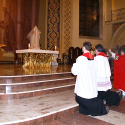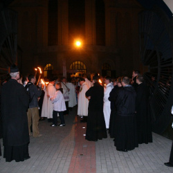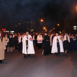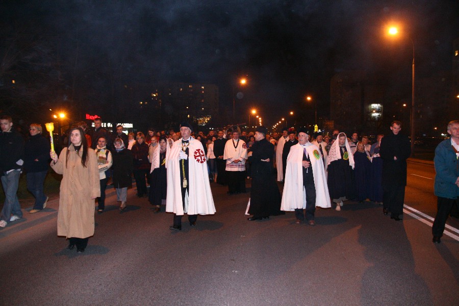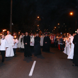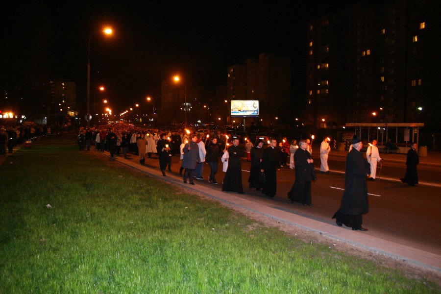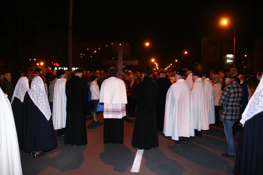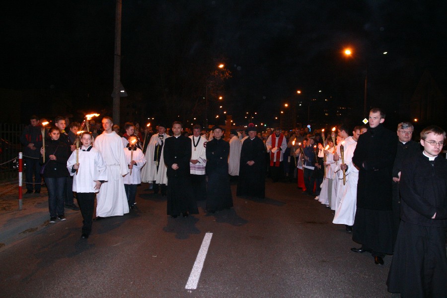 Liturgia Męki Pańskiej. Po Adoracji Krzyża, o godz. 20.00 z naszego kościoła wyruszyła Ursynowska Droga Krzyżowa ulicami Stryjeńskich i Dereniową. Rozważania poprowadził ks. Sergiusz Dębecki. Droga Krzyżowa zakończyła się w kościele św. Tomasza