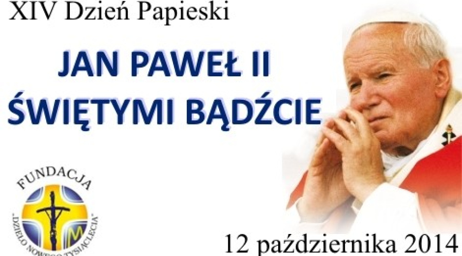 1. Przeżywamy dzisiaj XIV Dzień Papieski pod hasłem: „Świętymi bądźcie” po mszach św. odbywa się zbiórka do puszek. Ofiary zostaną przekazane fundacji „Dzieło nowego tysiąclecia” na stypendia edukacyjne dla zdolnej młodzieży z ubogich środowisk. Z tej okazji zapraszamy na Koncert galowy Dnia Papieskiego transmitowany przez program I telewizji Polskiej i Telewizję Polonia, dziś o godz. 15.30 przed kościołem Wniebowstąpienia Pańskiego przy AL. KEN 101.