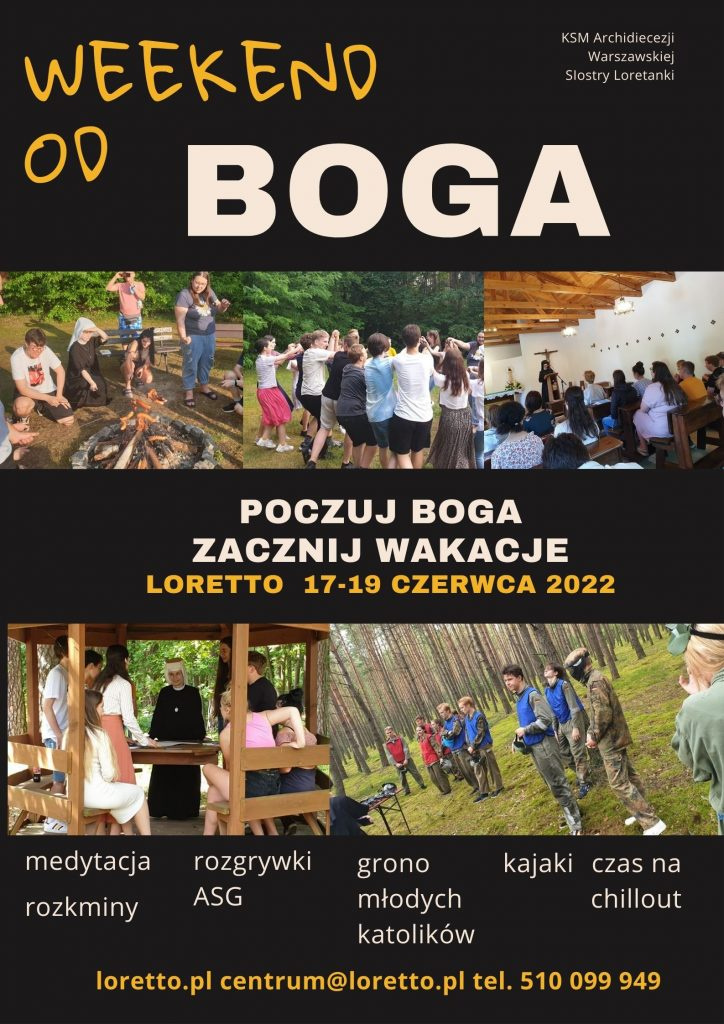 Weekend od Boga” to zaskakująca nazwa rekolekcji dla młodzieży. Mają one pomóc uświadomić, że radosny czas beztroskich wakacji otrzymujemy od Boga – dobrego Stwórcy i Przyjaciela. Był to czas rekreacji, modlitwy i relaksu.
