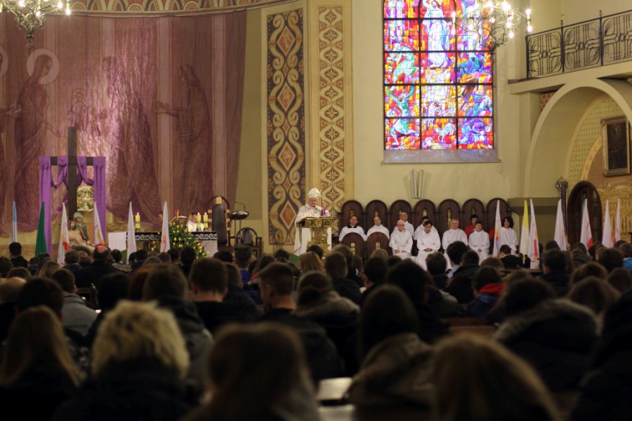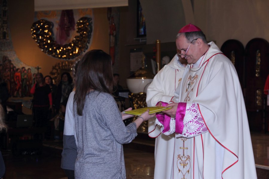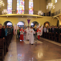 W sobotę 19.03.2016 w naszej parafii odbyło się spotkanie młodzieży (z dekanatów mokotowskiego i ursynowskiego) przygotowującej się do sakramentu bierzmowania i wolontariuszy ŚDM z ks. biskupem Michałem Janochą. Spotkanie rozpoczęło się o godz. 14.00 programem ewangelizacyjnym, o 15.00 ks. biskup odprawił Mszę Świętą.