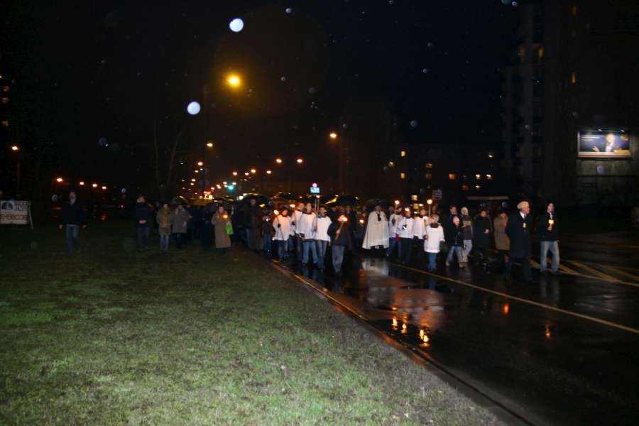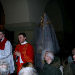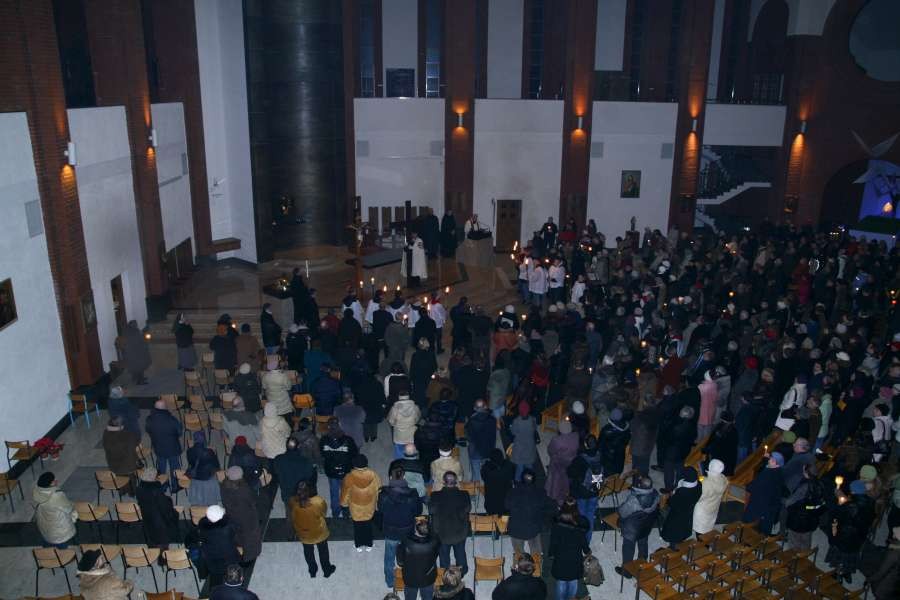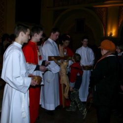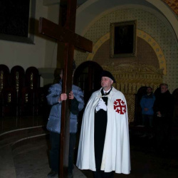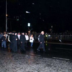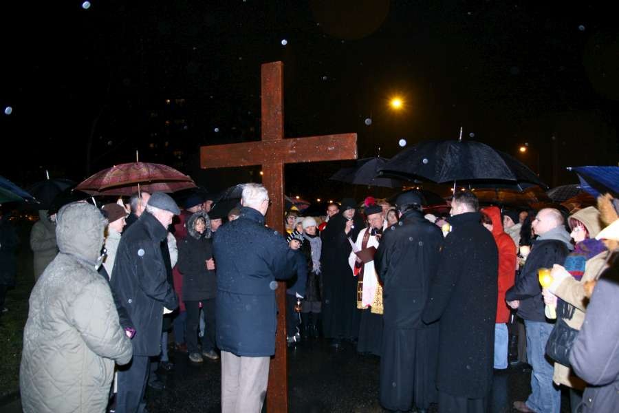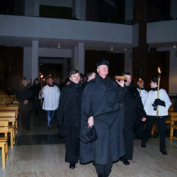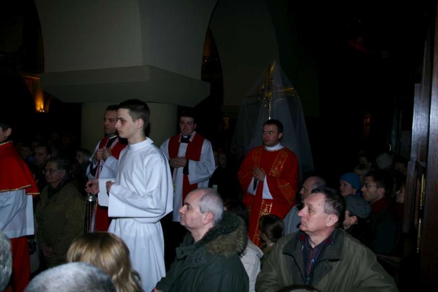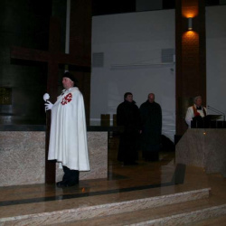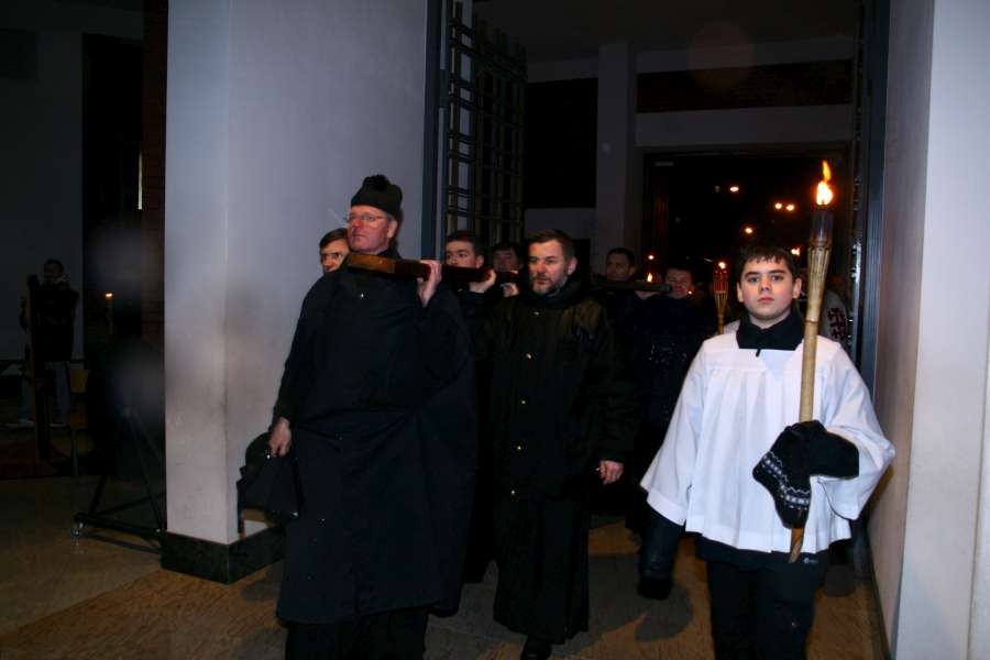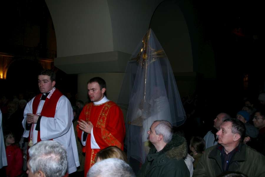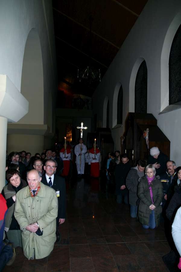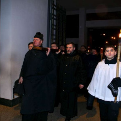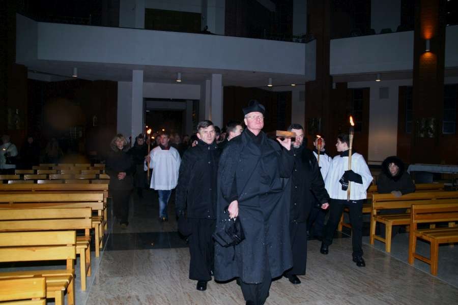 Liturgia Męki Pańskiej. Po Adoracji Krzyża, o godz. 20.30 z naszego kościoła wyruszyła Międzyparafialna Droga Krzyżowa ulicami Stryjeńskich i Dereniową. Rozważania poprowadził ks. prałat Tomasz Król. Droga Krzyżowa zakończyła się w kościele św. Tomasza