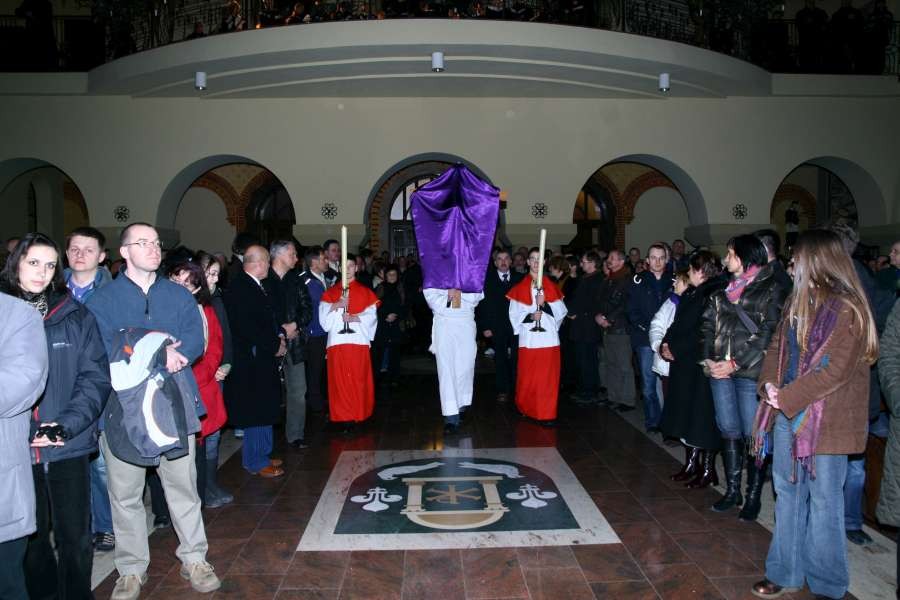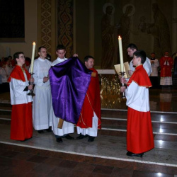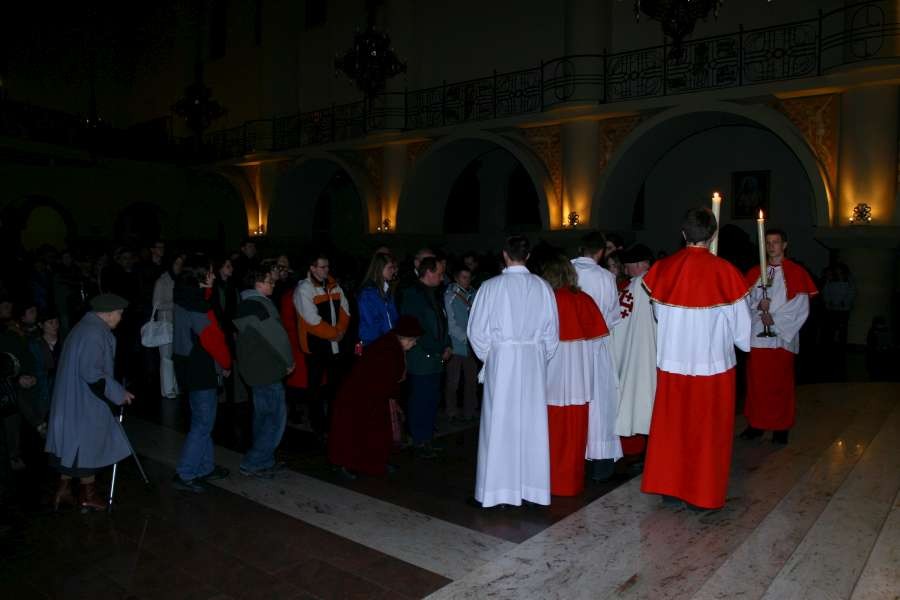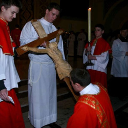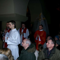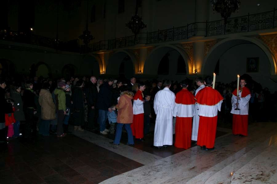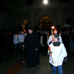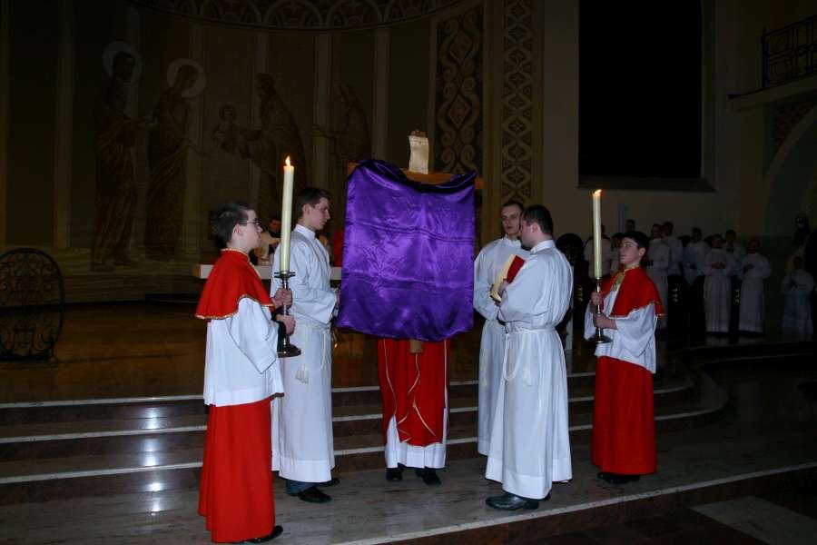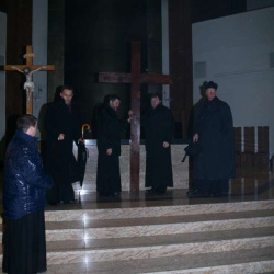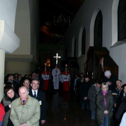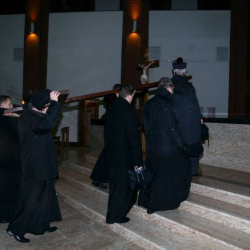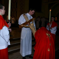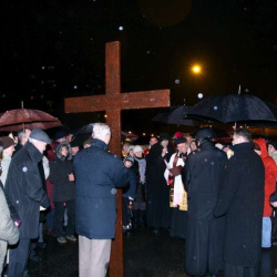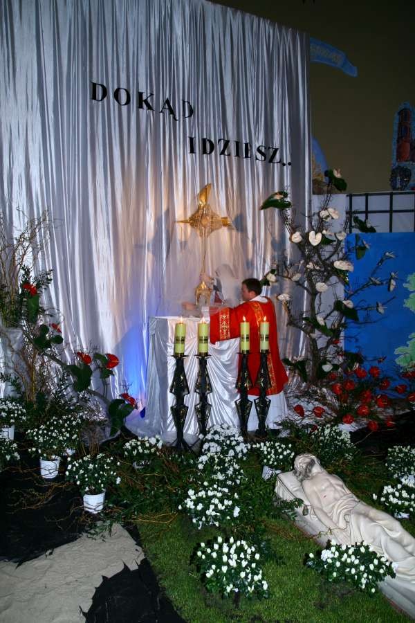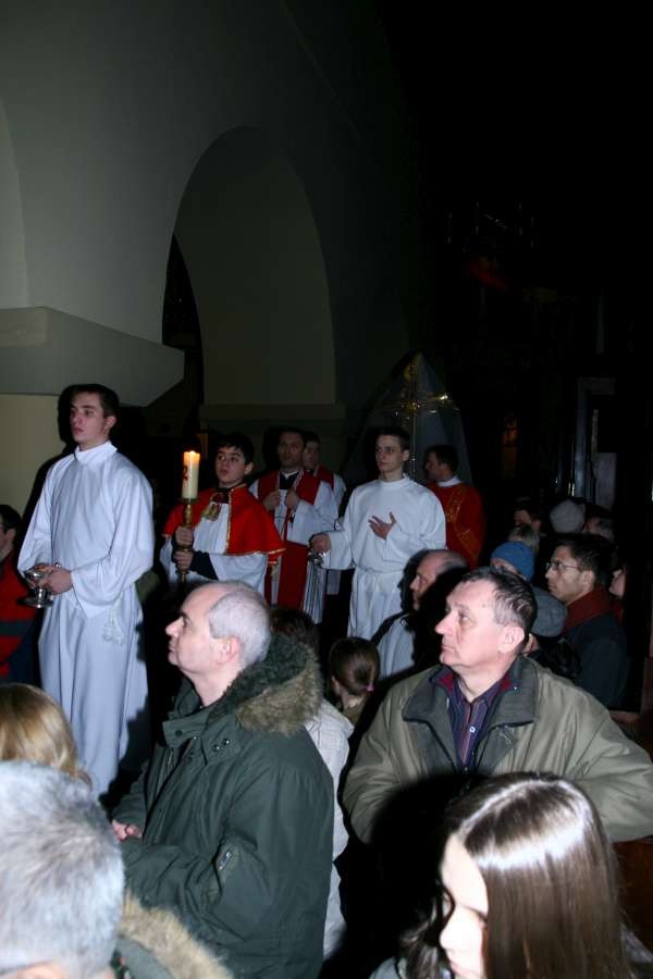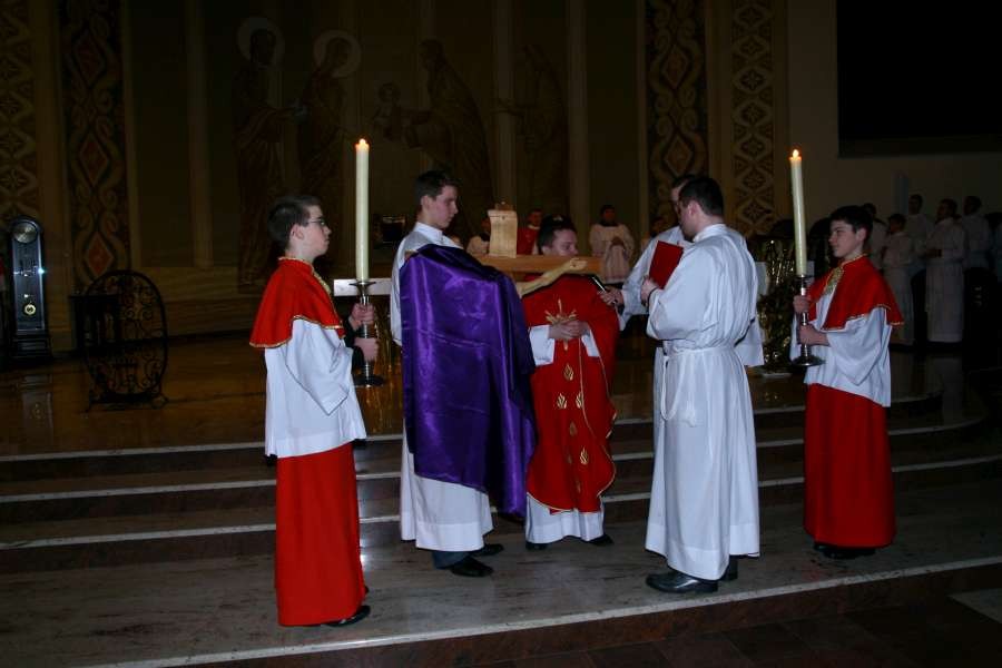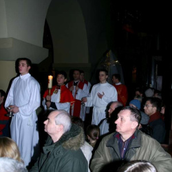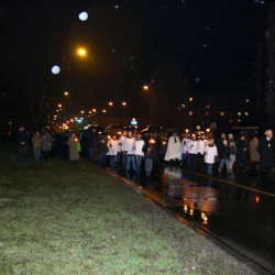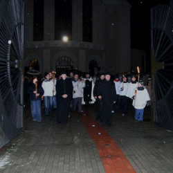 Liturgia Męki Pańskiej. Po Adoracji Krzyża, o godz. 20.30 z naszego kościoła wyruszyła Międzyparafialna Droga Krzyżowa ulicami Stryjeńskich i Dereniową. Rozważania poprowadził ks. prałat Tomasz Król. Droga Krzyżowa zakończyła się w kościele św. Tomasza