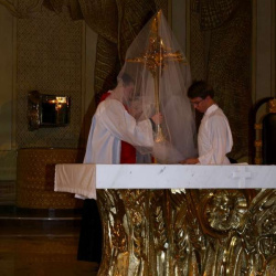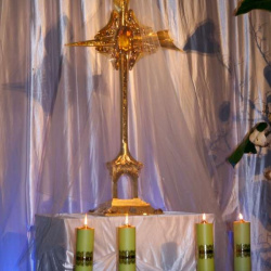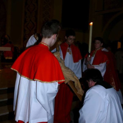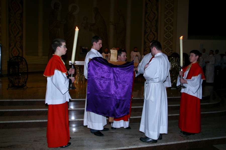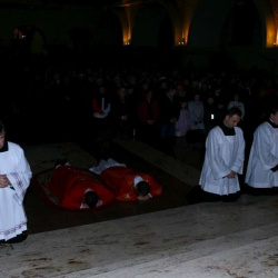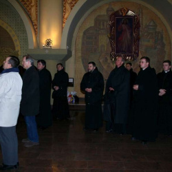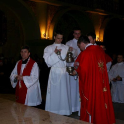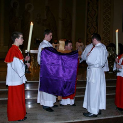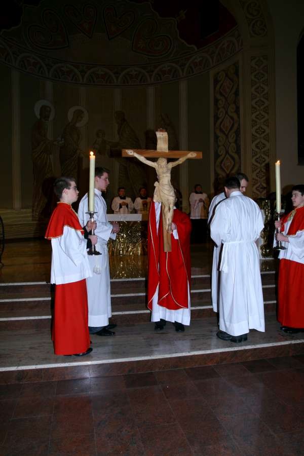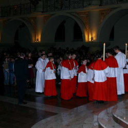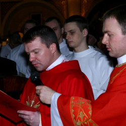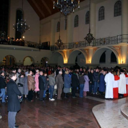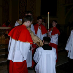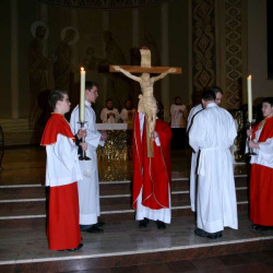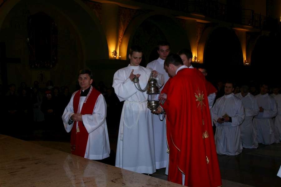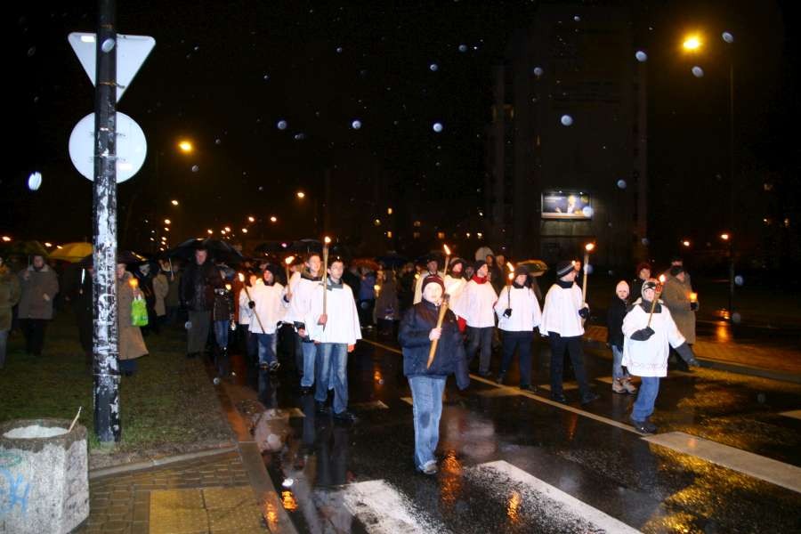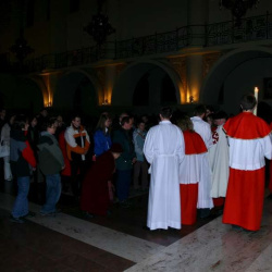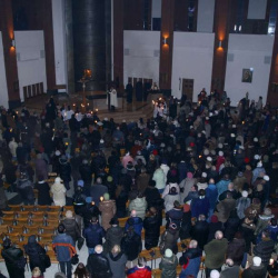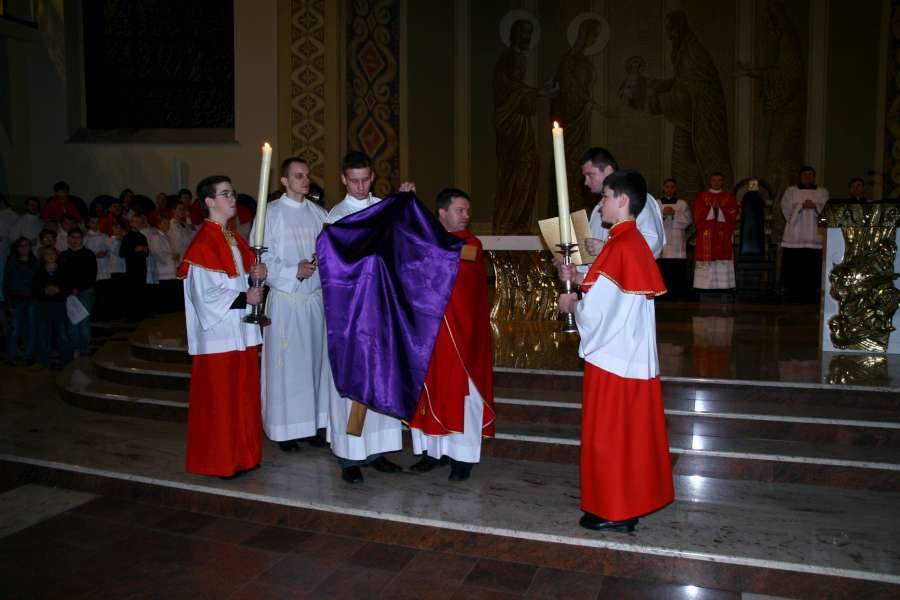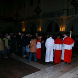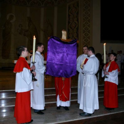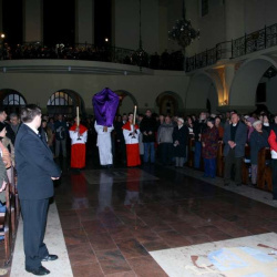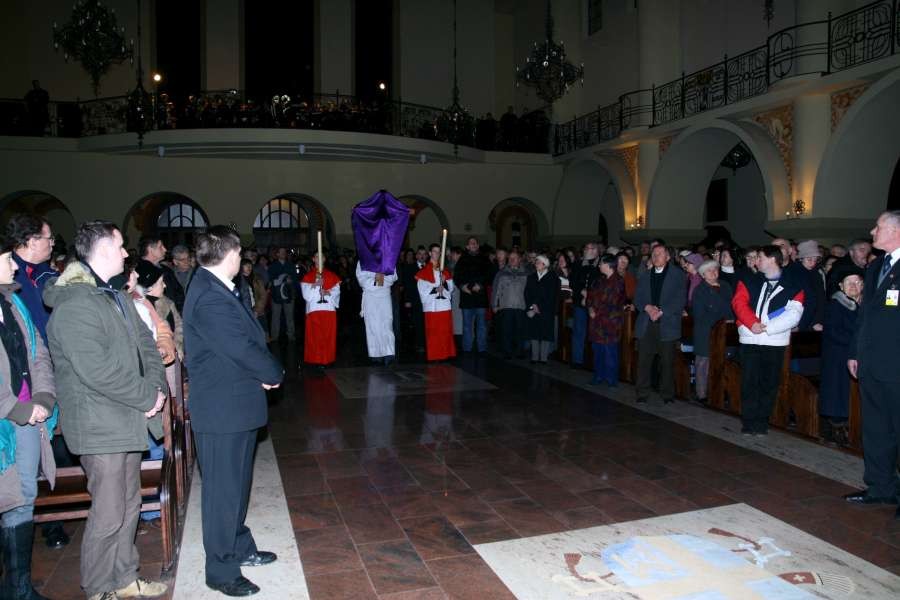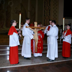 Liturgia Męki Pańskiej. Po Adoracji Krzyża, o godz. 20.30 z naszego kościoła wyruszyła Międzyparafialna Droga Krzyżowa ulicami Stryjeńskich i Dereniową. Rozważania poprowadził ks. prałat Tomasz Król. Droga Krzyżowa zakończyła się w kościele św. Tomasza