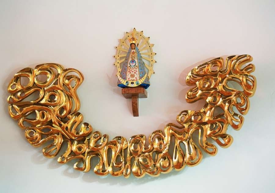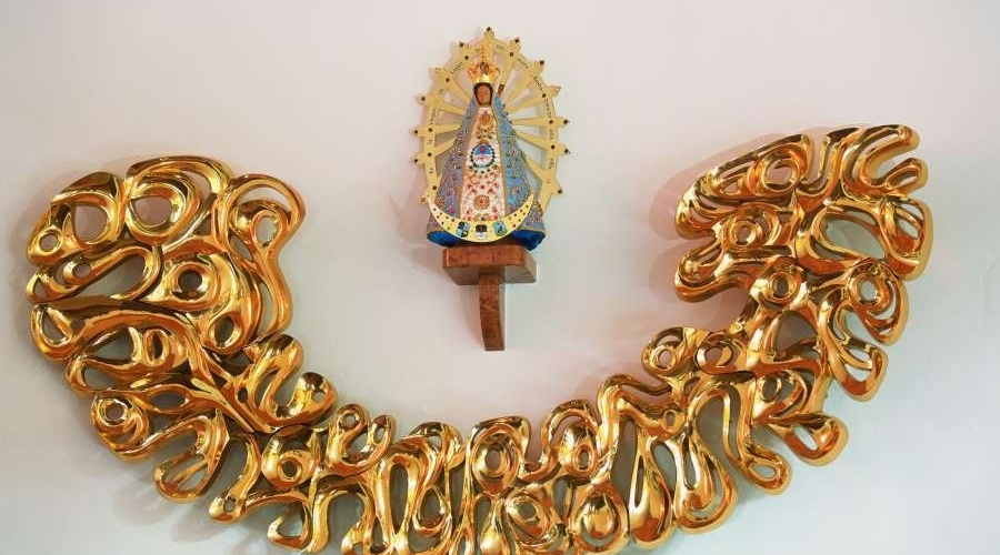 Wnętrze bocznej kaplicy kościoła, w którym stanęła kopia cudownej figury, dzięki argentyńskiemu ofiarodawcy Ricardo Fernandezowi Nunezowi upiększono witrażami i mozaikami. On jest również fundatorem ołtarza.